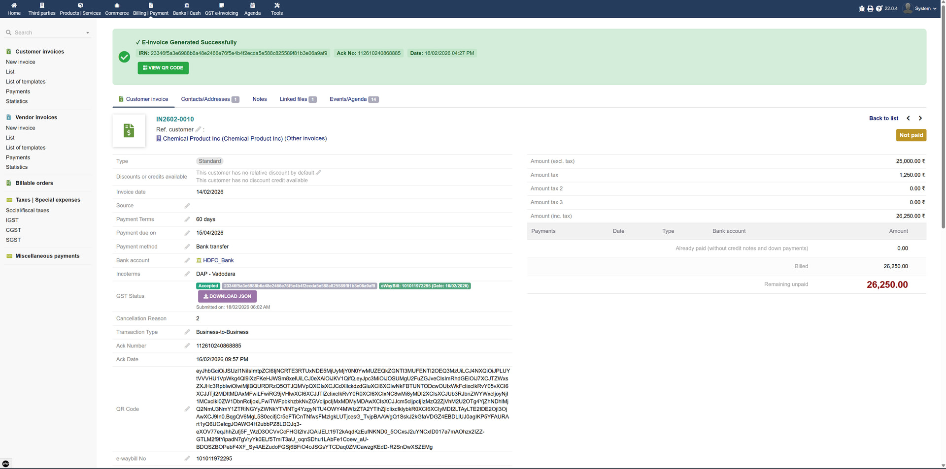 "SignedQRCode": "eyJhbGciOiJSUzI1NiIsImtpZCI6IjNCRTE3RTUxNDE5MjUyMjY0N0YwMUZEQkZGNTI3MUFENTI2OEQ3MzUiLCJ4NXQiOiJPLUYtVVVHU1VpWkg4Ql9iXzFKeHJWSm8xelUiLCJ0eXAiOiJKV1QifQ.eyJpc3MiOiJOSUMgU2FuZGJveCIsImRhdGEiOiJ7XCJTZWxsZXJHc3RpblwiOlwiMjlBQURDRzQ5OTJQMVpQXCIsXCJCdXllckdzdGluXCI6XCIwNkFBTUNTODcwOUIxWkFcIixcIkRvY05vXCI6XCJJTjI2MDItMDAxMFwiLFwiRG9jVHlwXCI6XCJJTlZcIixcIkRvY0R0XCI6XCIxNC8wMi8yMDI2XCIsXCJUb3RJbnZWYWxcIjoyNjI1MCxcIkl0ZW1DbnRcIjoxLFwiTWFpbkhzbkNvZGVcIjpcIjMxMDMyMDAwXCIsXCJJcm5cIjpcIjIzMzQ2ZjVhM2U2OTg4YjZhNDhlMjQ2NmU3NmY1ZTRiNGYyZWNkYTVlNTg4YzgyNTU4OWY4MWIzZTA2YTlhZjlcIixcIklybkR0XCI6XCIyMDI2LTAyLTE2IDE2OjI3OjAwXCJ9In0.BqgQV6MgL5S0ecifjCr5eFTiCnTNfwsFMzIgkLUTjcesG_TvjpBAAWgQ1SskJ2kGfaVDGZ4EBDLlUJ0agIKP5YFAURArt1yQ6UCeIcgJOAWO4H2ubbPZ8LDQJq3-eXOV77eqJhhZufj5F_WzD3OCVvCcFHGI2hrJQAiJELt19T2kAqdKzEufNKND0_5OCxsJ2uYNCxID017a7mAOhzx2IZZ-GTLM2f9tYipadN7gVryYk0ELf5TmiT3aU_oqnSDhu1LAbFe1Coew_aU-BDQSZBOPebF4XF_Sy4AEZudoFGSj6BFiO4oJSGsYTCDaq0ZMCawzgKEdD-R2SnDwXSZEMg",