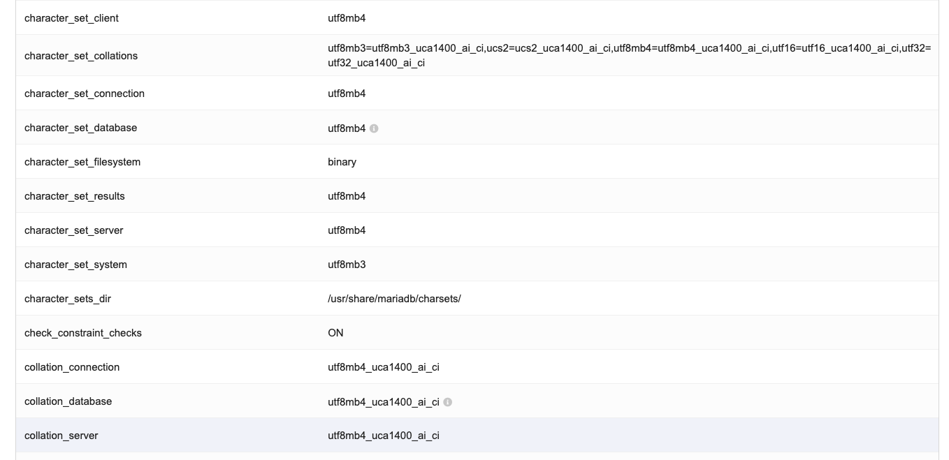 AND character_set_name = 'utf8mb4';