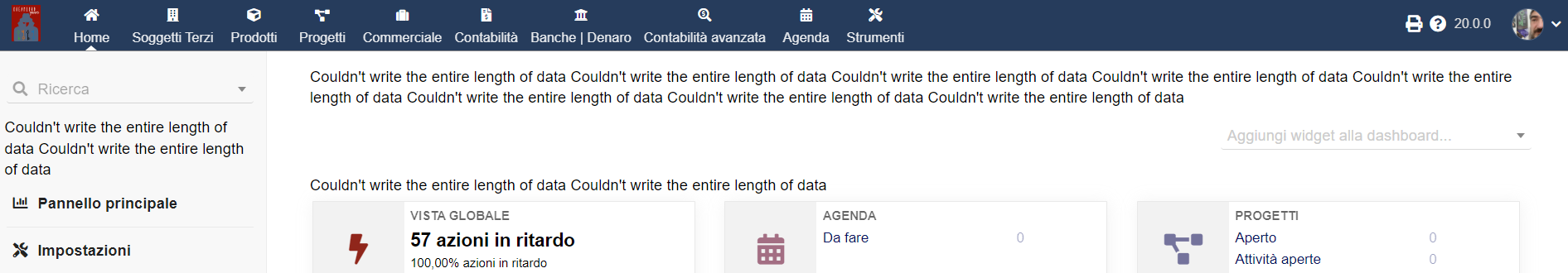 I disabled prod (setting prod=0 in config), and a lot of “Couldn’t write the entire length of data” appear on my dolibarr pages.