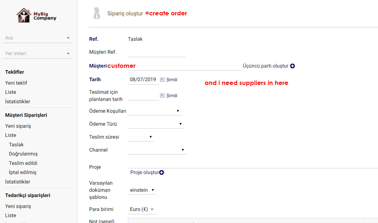 I need, supplier lists when i create order form. if possible? i tryed in Complementary attributes but i got error code. i dont know