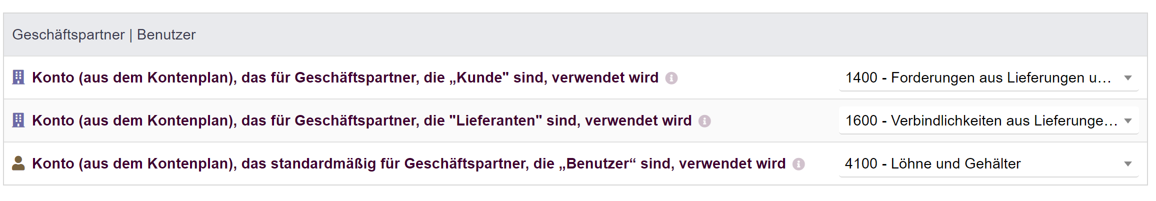 Account (from the Chart Of Account) used for “user” third parties