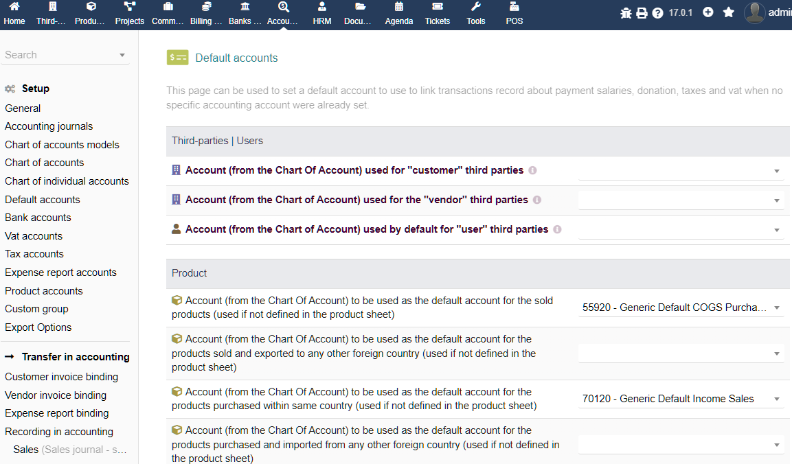 If I go to Accounting \ Setup \ Default Accounts, I have these options