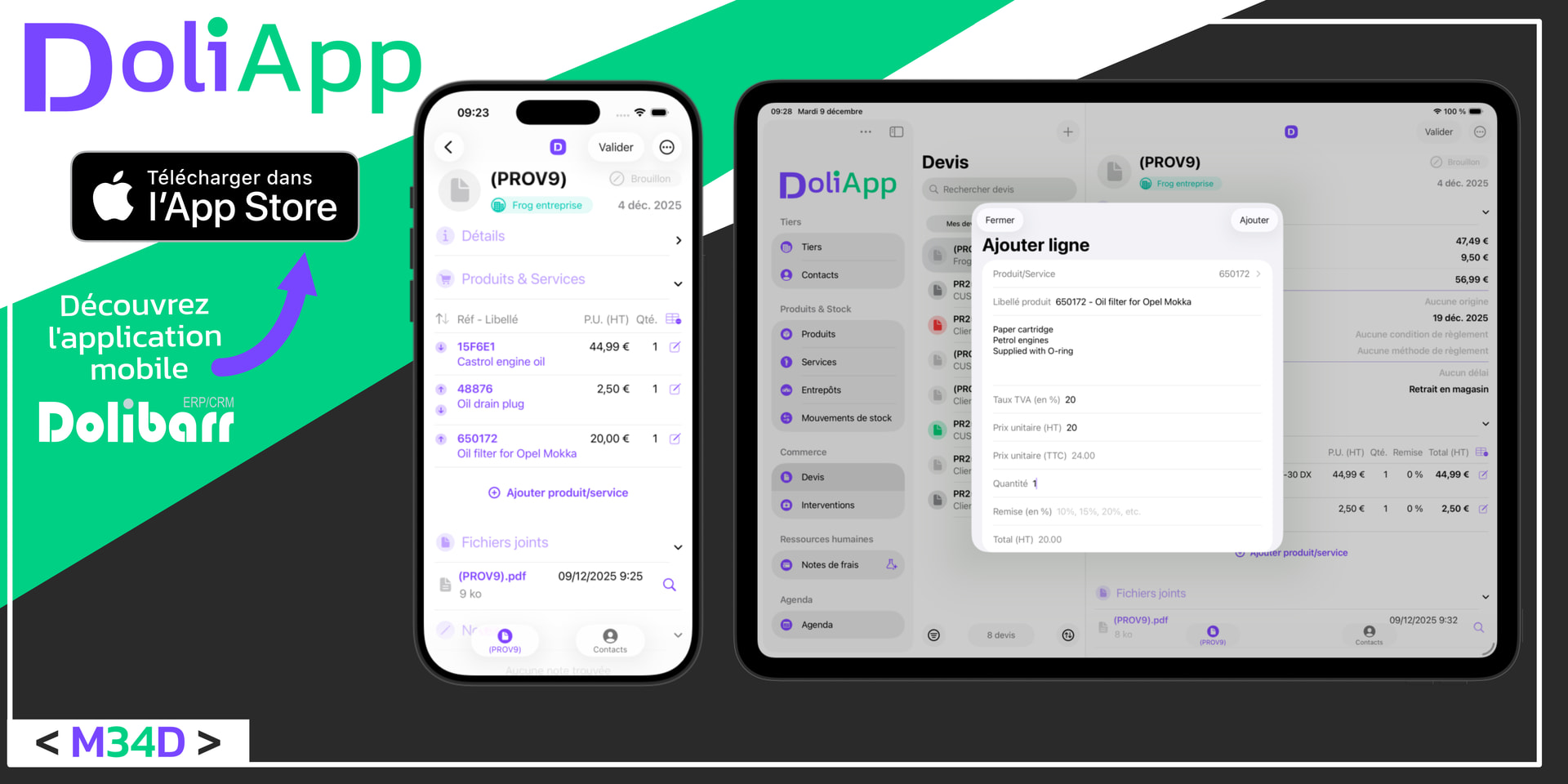 I’m William, and I’d like to introduce myself and say hi to the English-speaking Dolibarr community. After several years of working on Dolibarr software development, I’m excited to announce the launch of my own company, M34D, based in Normandy, France. We specialize in Dolibarr core development and mobile development for Apple platforms.