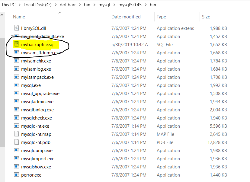 c:\dolibarr\bin\mysql\mysql5.0.45\bin\mysql Ver 14.12 Distrib 5.0.45, for Win32 (ia32)