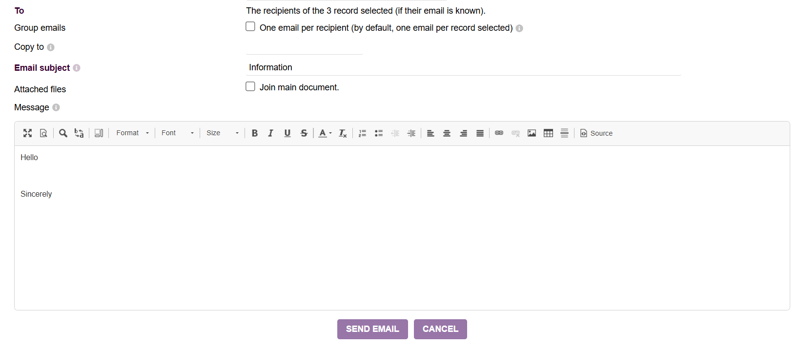 @jonbendtsen This is from “Third Parties” where you can pick one or more contacts and then in the action pull down choose “Send by Email” .. it brings up this interface, which we want to use to start reaching out to contacts from within Dolibarr.