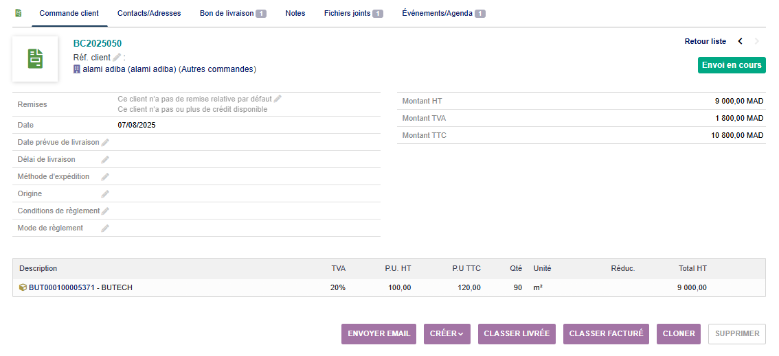 When a Bon de commande (order) is linked to a Bon de livraison (delivery note), it seems that the order becomes locked and cannot be modified anymore — even by users with full permissions like a commercial or sales manager.