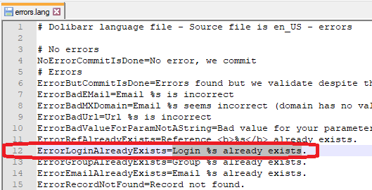 Upon grep’ing the whole htdocs/langs, for example, error message “Login already exists” is not in any of the languages.