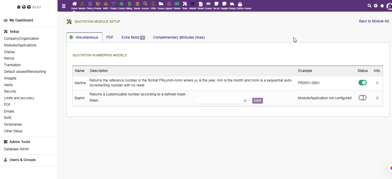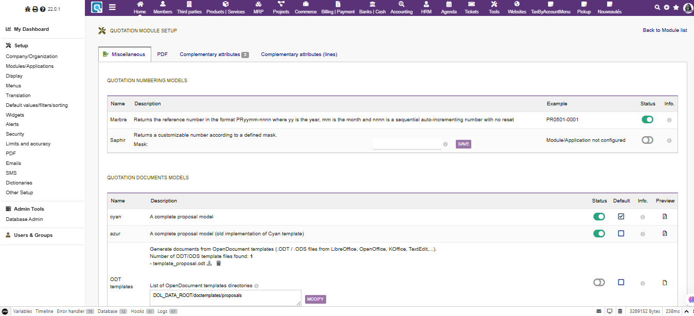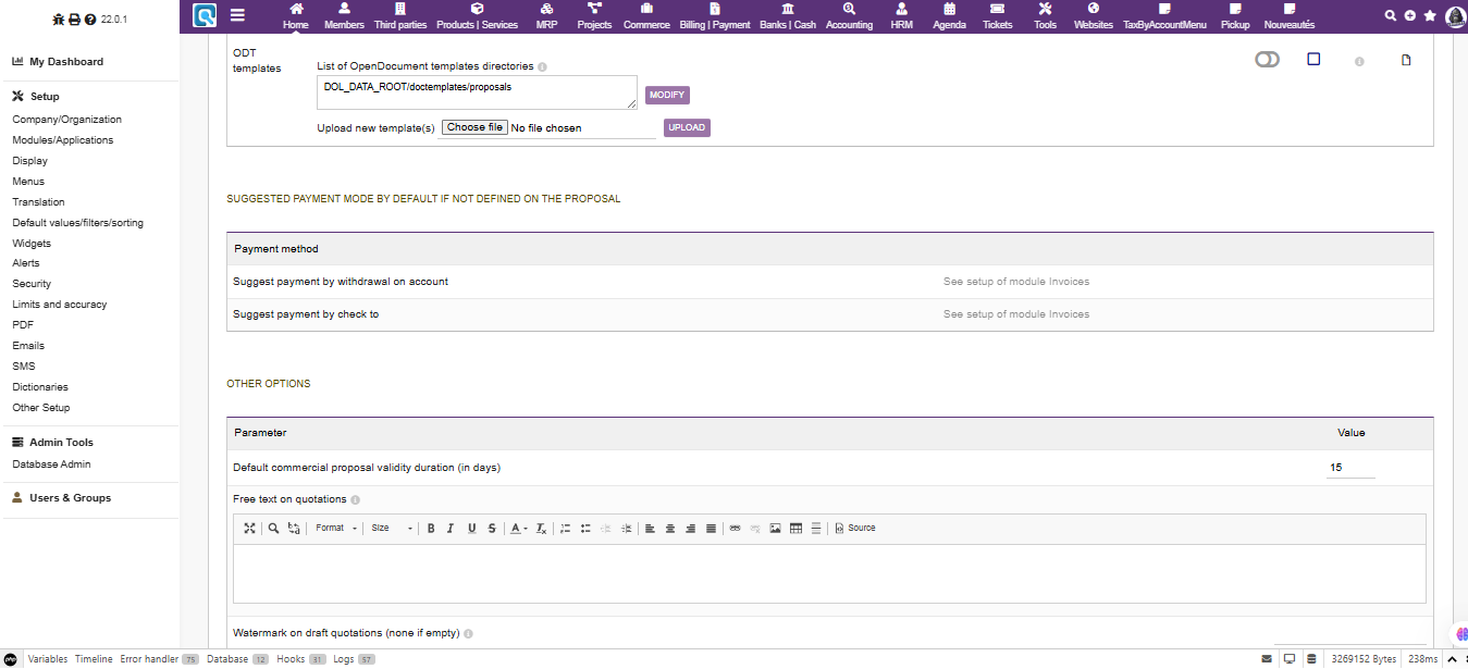 the signature / seal is coming in Invoices but not in quotations (Could you please tell me which version of Dolibarr you’re using? Also, what is the URL of your module setup page where the “Other options” block is not appearing?)