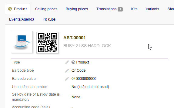 the QRcode / Barcode should contain product reference (or complete details if QR selected)