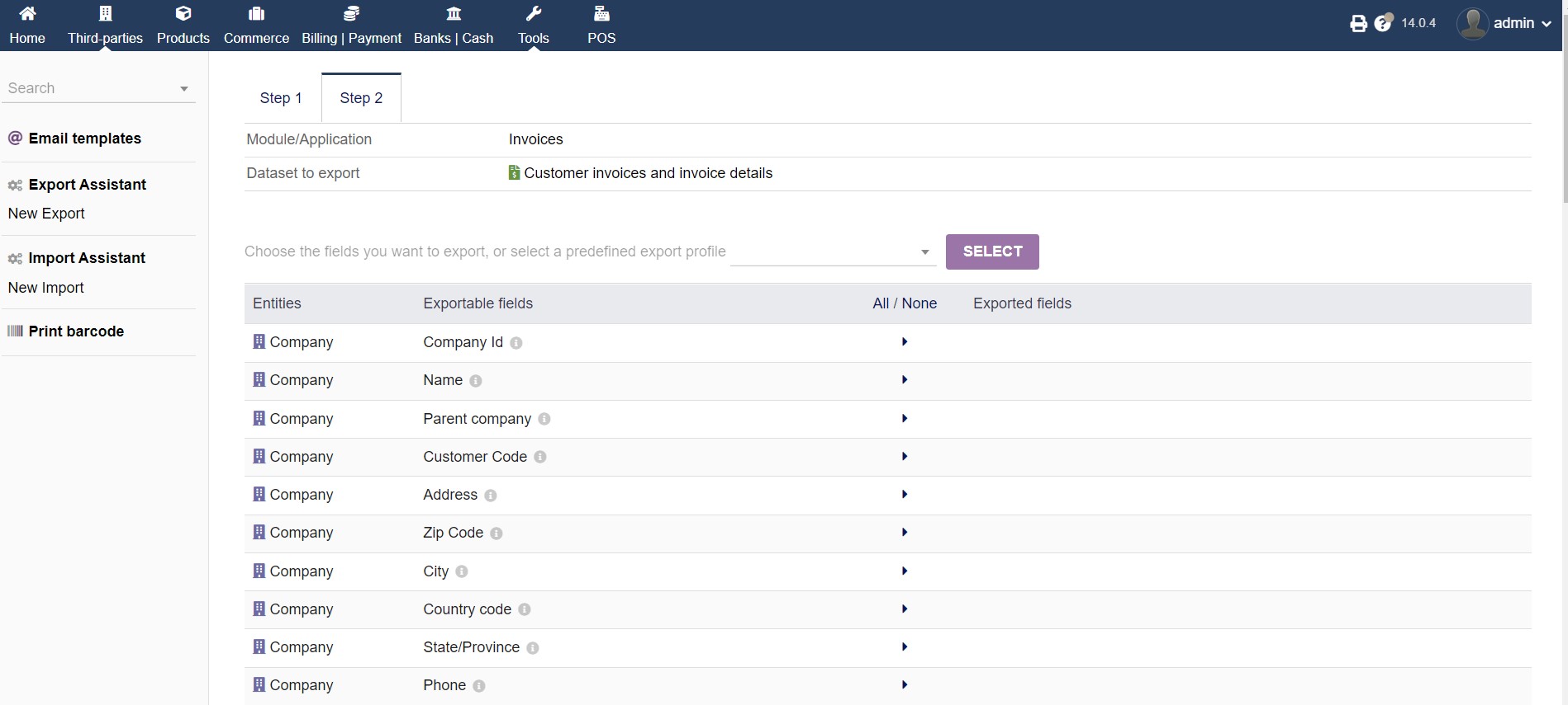 in the screenshot, you are exporting the customer invoices. And indeed it’s not possible to select the categories as an additional field.