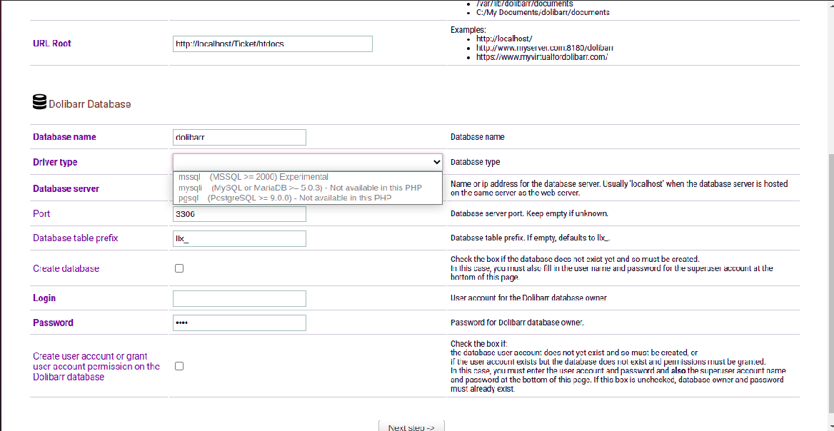 Please if anyone can help me to solve this installation problem otherwise in ‘database type’ I have no choice for Driver database type as you see on this image.