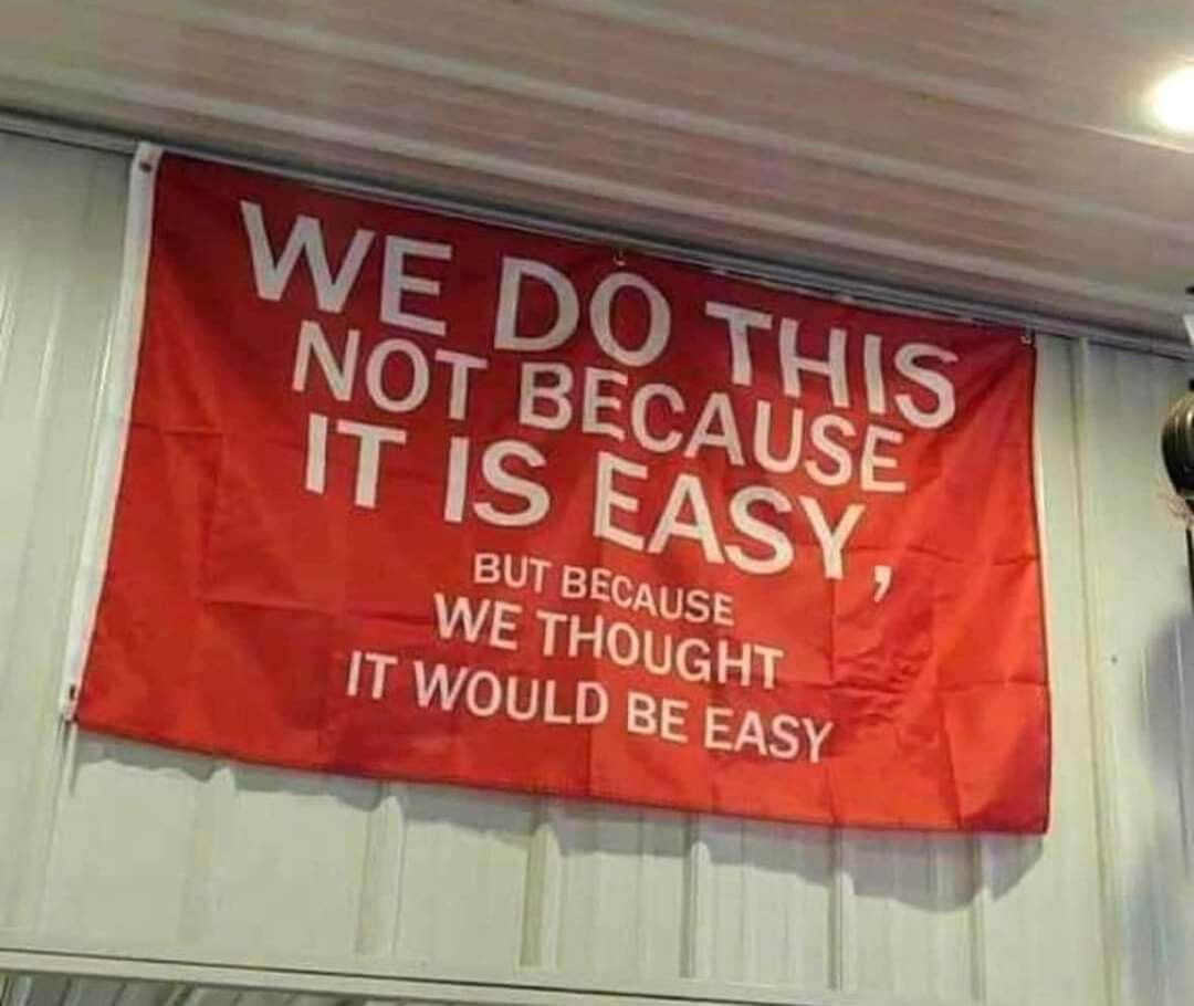 I prefer the alternative quote (this photo taken from internet, but i have the same flag here at the company)