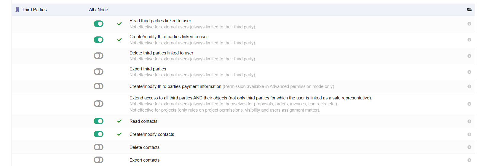 second thing in the previous version users could not see other users customer list but in the new Dolibar i cant see where to disable or enable users not to see other users customer list. i have checked every module permissions but nothing. i want each user to only see there customer list