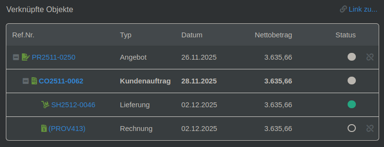 Full description and source code here: GitHub - svewa/dolibarr-LinkedObjectTree: Module to replace the related objects (only parent and children) with the full tree, so you can jump to any related document directly