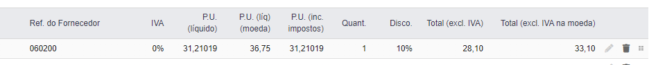 Also even when updating the lines manually the discounted total is calculated with an error. 31,21019*0,9=28,089171. This cannot be rounded up to 28.10.