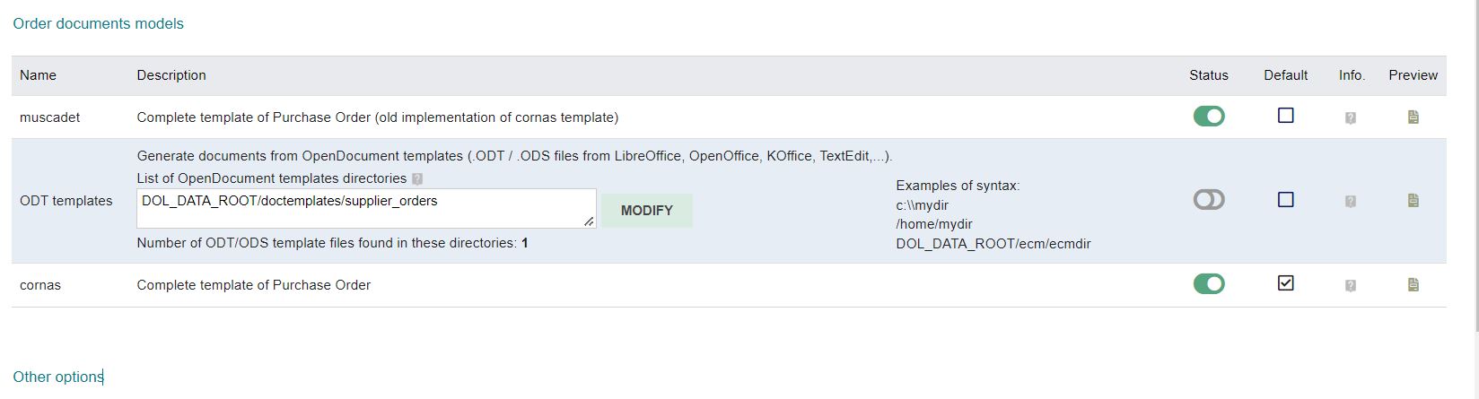 I also noticed that in the in the setup Purchase Order, there is no extra template appearing like it is for Sales Order.