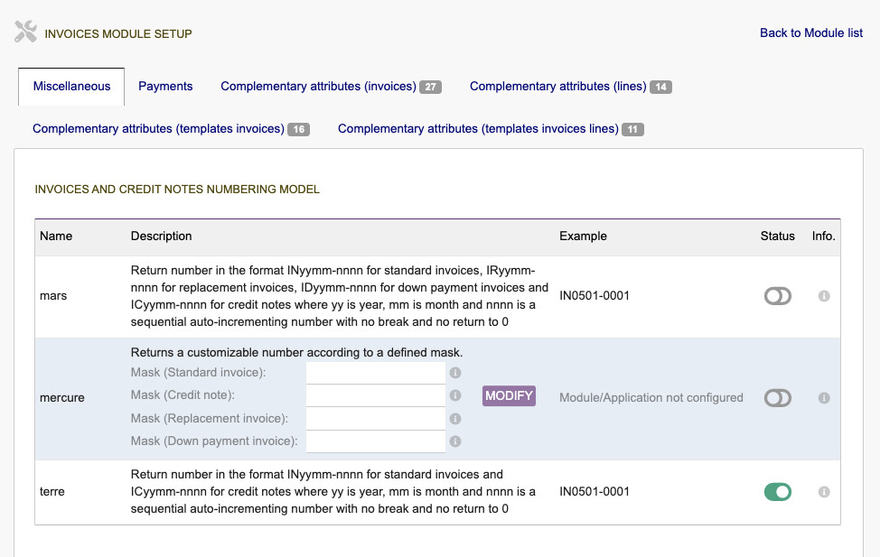 before i was usingterre for creating invoice with format FA0501-0001 for my regular invoice creation.