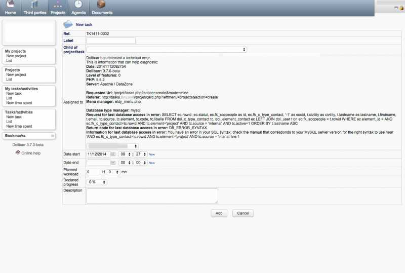 It seems like Dolibarr ver 3.6.1 supports mysql up to 5.5.38. -> https://bitnami.com/stack/dolibarr/changelog.txt. We are running Mysql 5.6.21 in all of our shared hosting servers. That is why there is error with the sql query. I suggest you to take a look at www.dolibarr.org/c/installing-my-dolibarr there is probably a workaround on this issue.