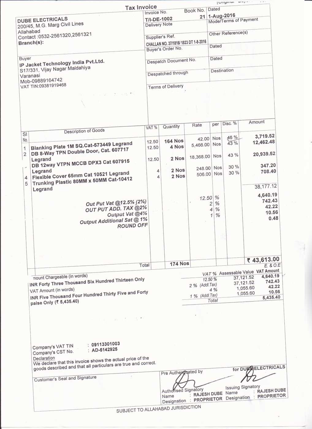 i: Retail Invoice with Vat @12.5% + Additional Vat@2%