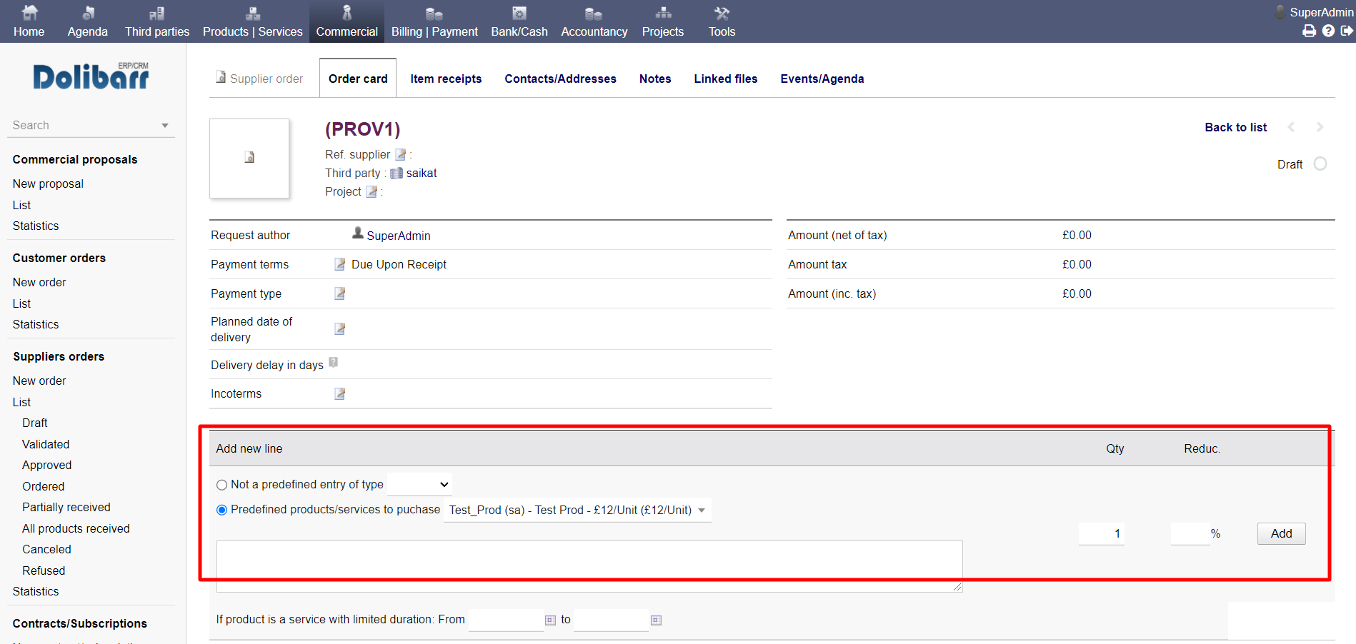 When i am selecting a product in Suppliers orders’s line item area then the price is not coming automatically in the place of unit price rather the field is getting hidden. Any info how will it work? Attaching a screen shot.