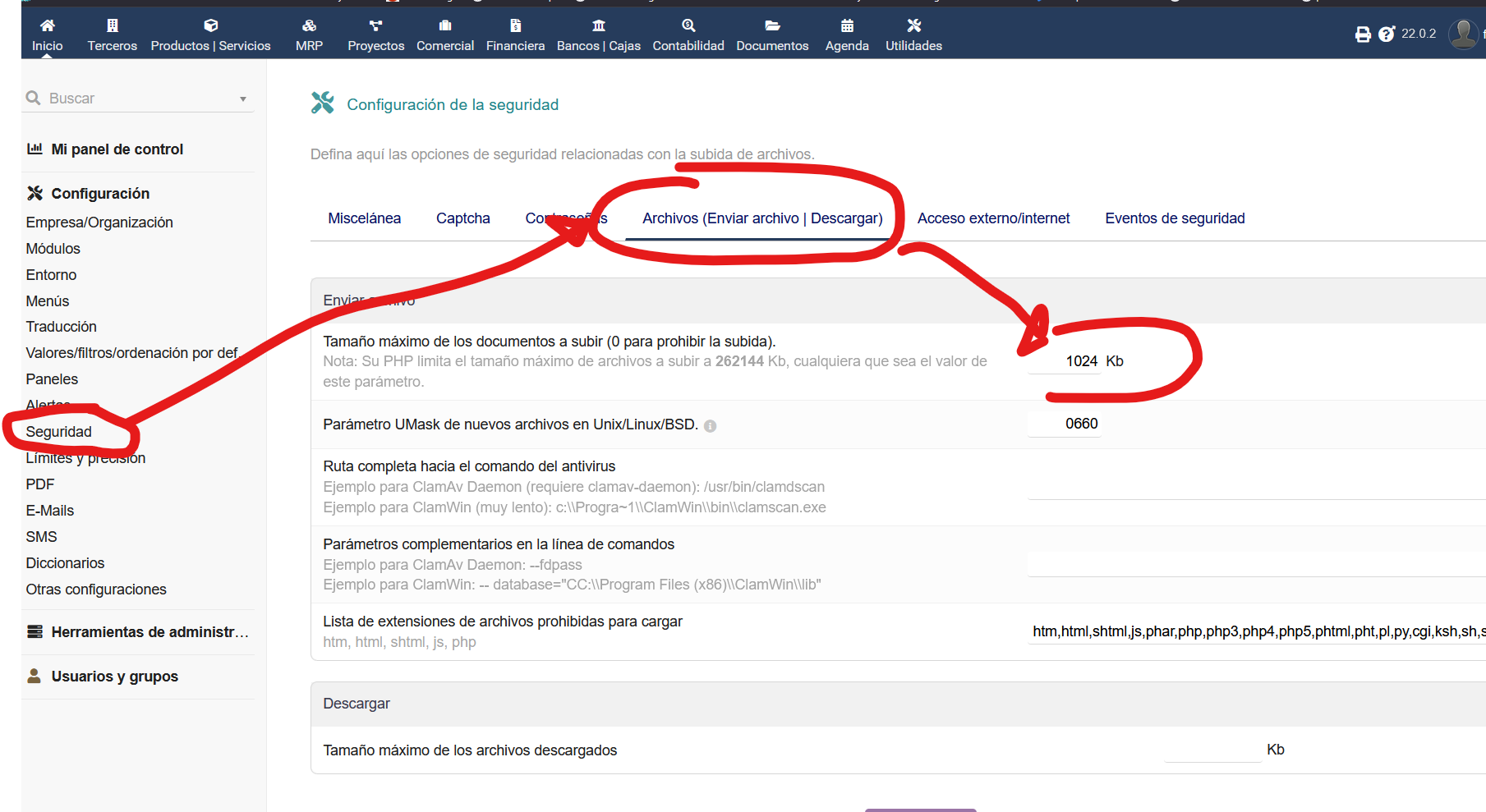 I’d also like if you could enable debug logging in Dolibarr and then send the output from dolibarr.log while trying to upload a file - and just that please
