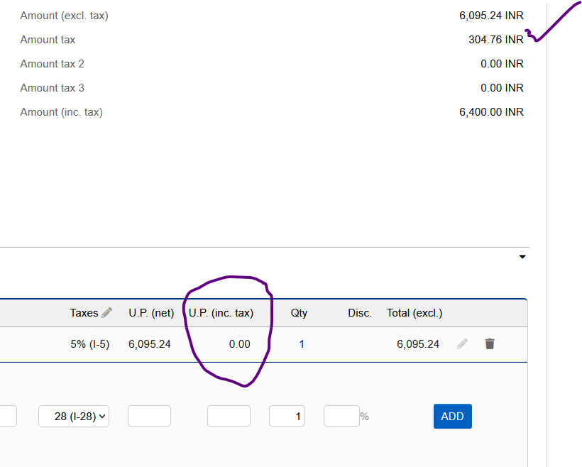 Please note: No issue found in other modules like Invoice, Sales order, Supplier invoice and Quotation.Only in the Purchase Order module the amount not showing in U.P. (inc.tax). at the time of creation. No issue in PO edit mode…….