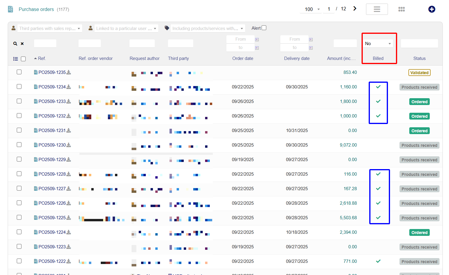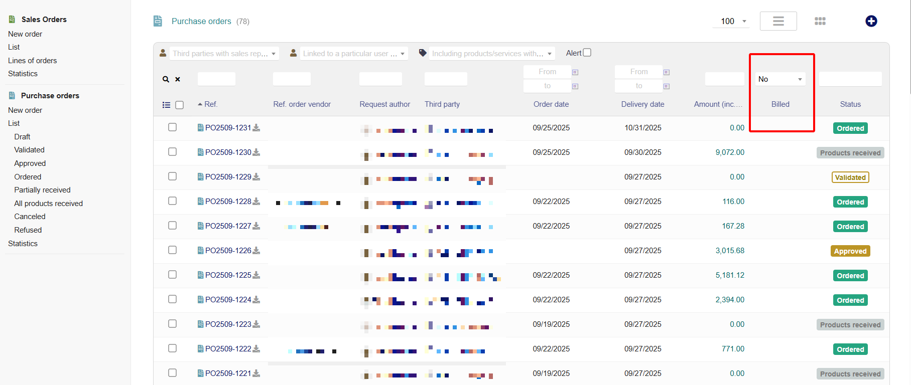 Vendor Purchase orders auto filter to Billed and I have to clear it to view all my POs