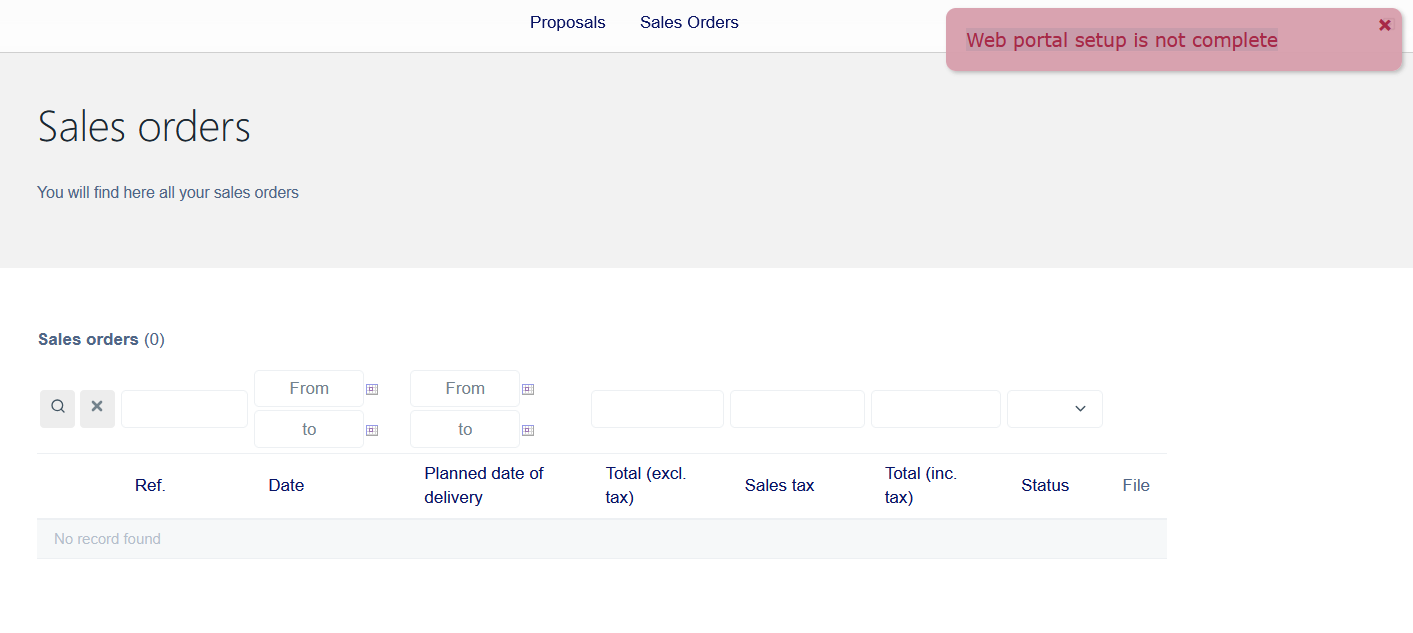 I get the same error. I just setup the module to test it, added a used from Third party, but “Web portal setup is not complete”. Also cannot see any information at all.